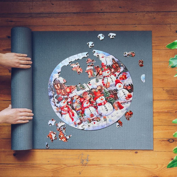 The mat rolls up beautifully and keeps the puzzle pieces together. There may be some seperation in the pieces that are put together after unrolling the mat, but it doesn’t take long to fix them. And it is a far better option than leaving the puzzle on the table or not doing it at all.