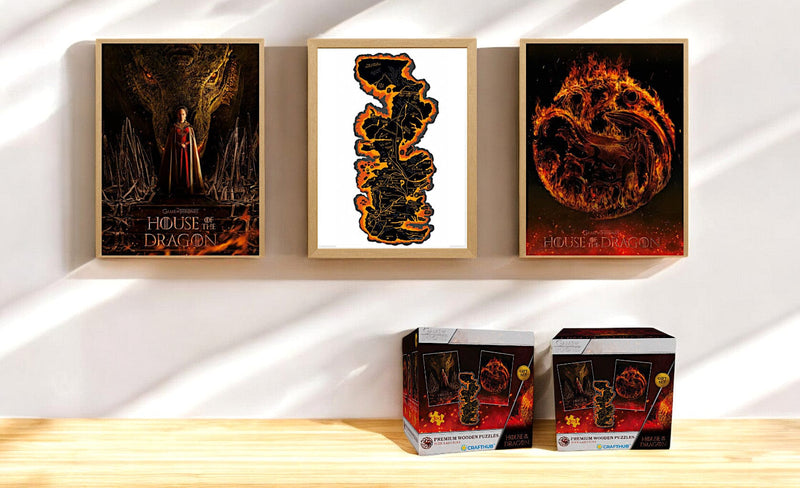 Assemble the darkness and legends of Westeros with unique pieces shaped like Daemon Targaryen, Rhaenyra Targaryen, Otto Hightower, Targaryen dragons, Valyrian steel swords, and the Weirwood tree.