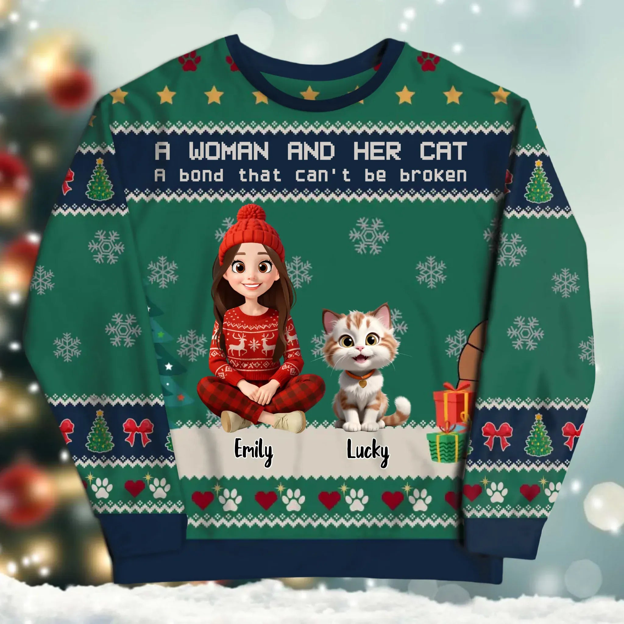 A Woman and Her Cat, A Bond That Can't Be Broken - Personalized Cat Lovers Custom All-Over-Print Sweatshirt