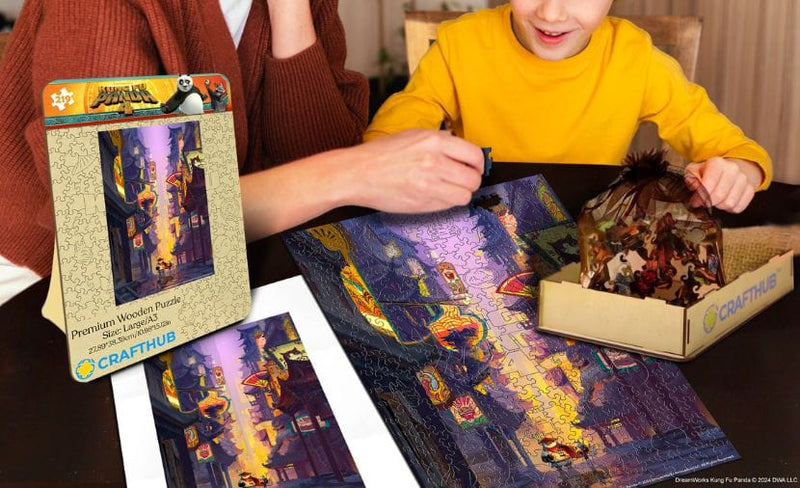 Laser-cut with 0.03 mm precision, each wooden puzzle piece fits flawlessly, ensuring immaculate detail in every aspect. This puzzle’s pieces —though distinct to sort - reflects Kung Fu Panda’s vibrant world.
