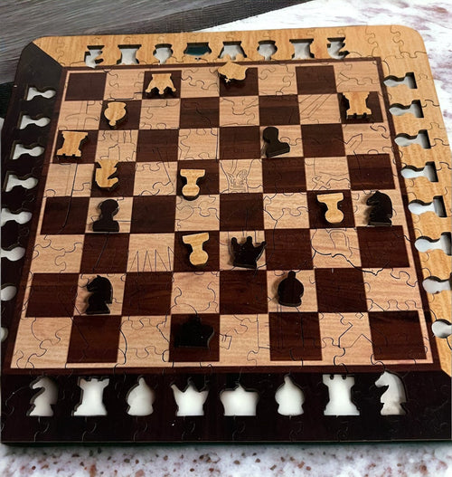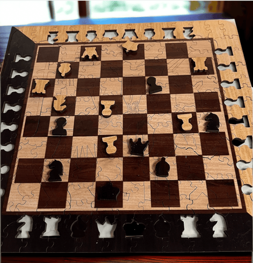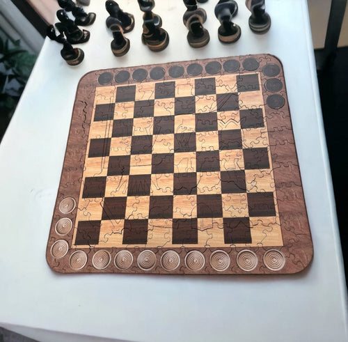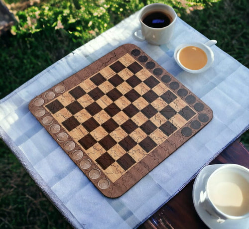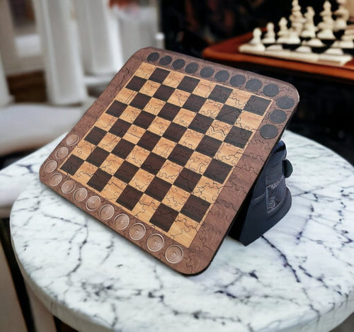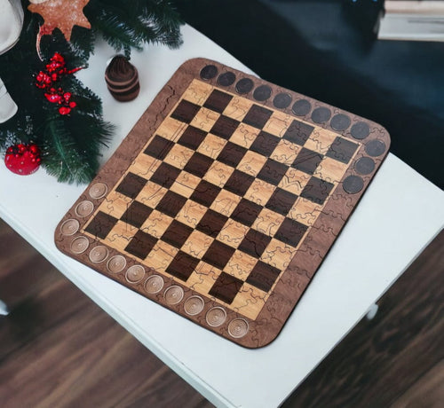 Crafted from high-quality wood, each piece is laser-cut for a perfect fit. The puzzle assembles into a durable, premium checkers board, enhancing your gaming experience.