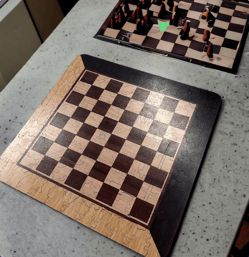 The quality of the wood is quite impressive, and the pieces fit together seamlessly. I appreciate the storage design within the puzzle’s border, which makes keeping track of the checker pieces a breeze.