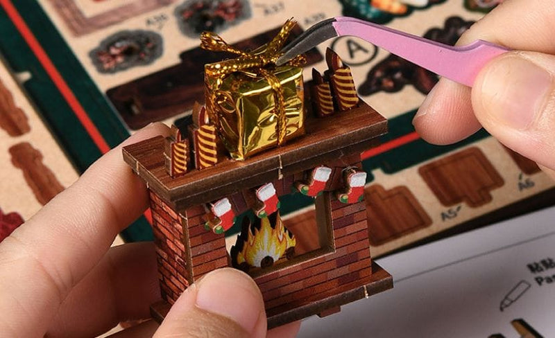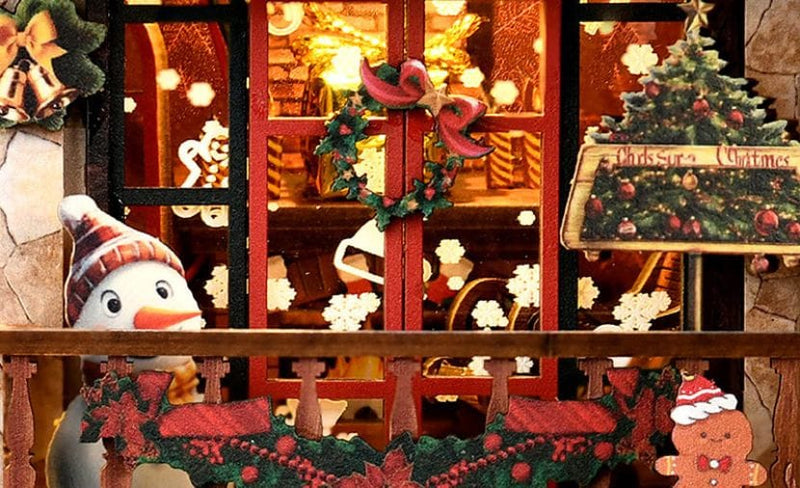 Each pre-cut wooden piece fits seamlessly, letting you recreate a charming holiday shop — from decorated shelves to the warm-lit window that sets the perfect Christmas mood.