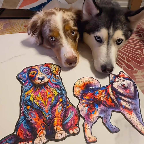 High quality wooden pieces in a variety of dog shapes were easy to manipulate without worrying about them falling apart like a traditional puzzle.