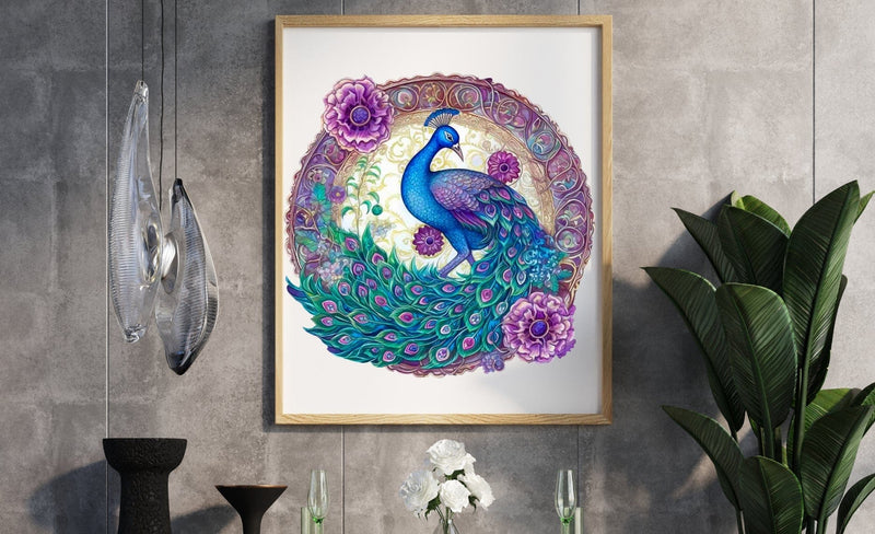 Advanced UV printing technology ensures bright and vivid Enchanted Peacock design that becomes a stunning art displays when completed.