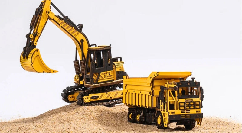 This construction vehicle model kit makes an ideal present for kids, teens, or even mechanical engineers. It can be showcased on a desk or in an office as a piece of decor.