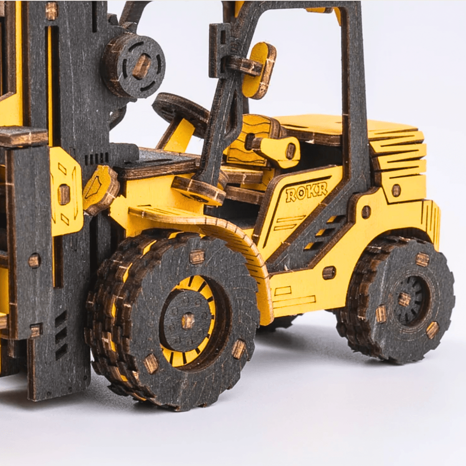 This is a detailed and enjoyable-to-use toy forklift, mirroring authentic industrial machinery. The kit provides a fun DIY experience with its wooden Forklift 3D puzzle that uses laser-cut technology for effortless assembly.