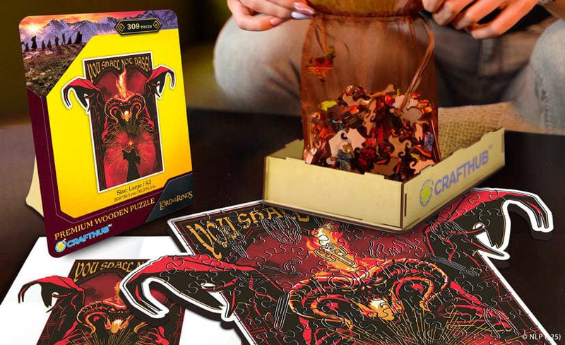 Assemble the darkness and legends of Middle-earth with unique pieces shaped like Aragorn, Gollum, Gandalf, Sauron, the One Ring, Elven leaves, Dwarven axes, and the White Tree of Gondor.