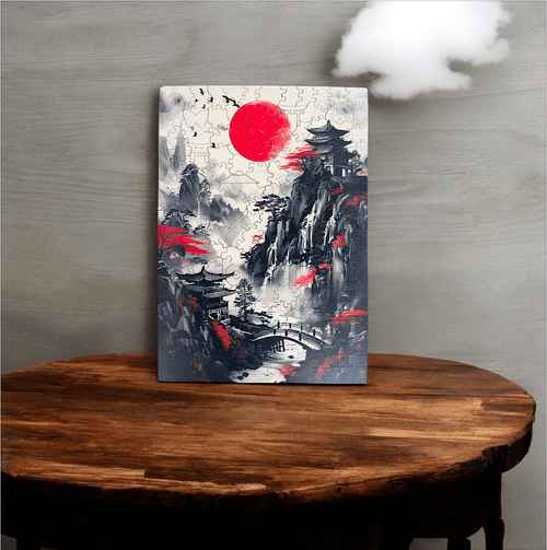 Embark on a journey through the Land of the Rising Sun with this enchanting jigsaw puzzle that brings together the tranquil beauty of Japan with its rich cultural icons through various unique puzzle piece, from Mount Fuji, Torii Gate, Bento rice to cherry blossoms and samurai helmets.