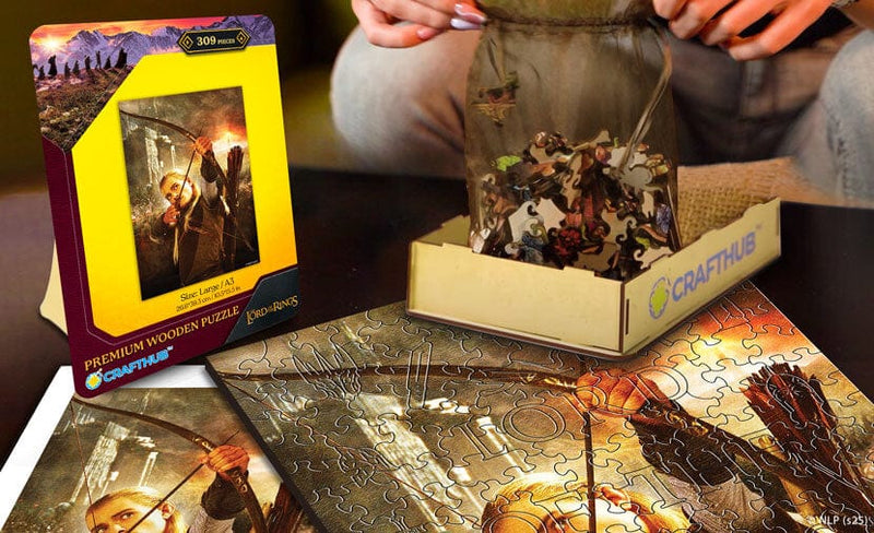 Laser-cut with 0.03 mm precision, each wooden puzzle piece fits flawlessly, ensuring immaculate detail in every aspect. This puzzle’s pieces—though distinct to sort—pose a formidable assembly challenge.