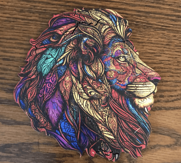 As you assemble the Majestic Lion puzzle, you'll uncover pieces shaped like various jungle animals.