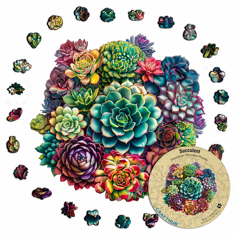 As you assemble the puzzle, you’ll uncover countless pieces shaped include various succulent plants, such as rosettes, cacti, and more. Each piece is intricately detailed to represent different species and unique designs.