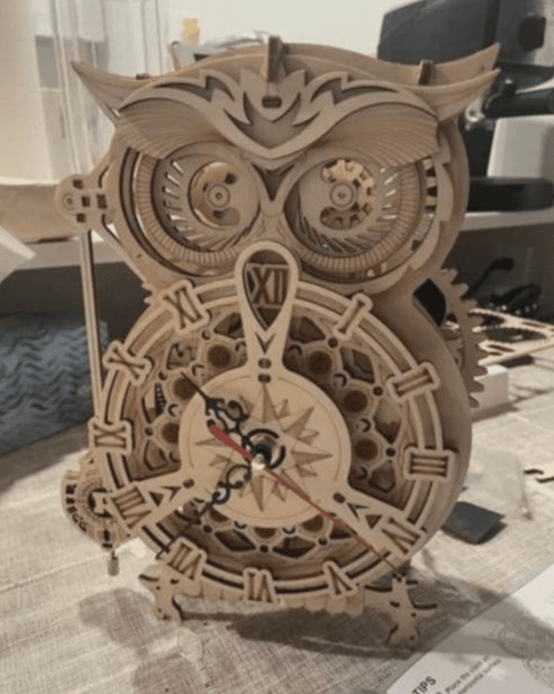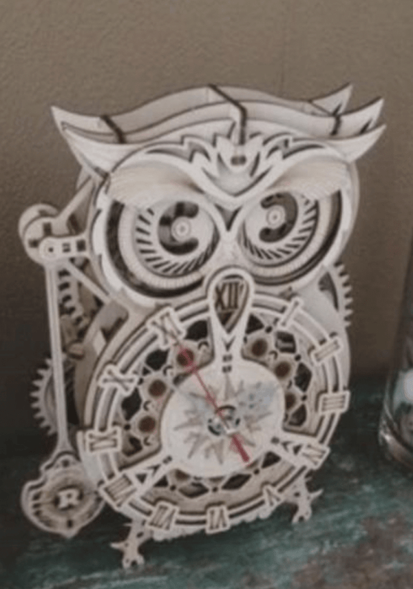 Presenting an authentic wooden clock that provides accurate time. This timepiece is powered by a precise quartz battery movement, while a spring-driven timer, capable of setting up to 30 minutes, rings to alert when time is up. The clock features a wind-up pendulum with an accurate lever escapement. When time expires, the timer bell rings out. Its charming owl shape and lovely dial, adorned with Roman numerals, make this more than a timepiece.