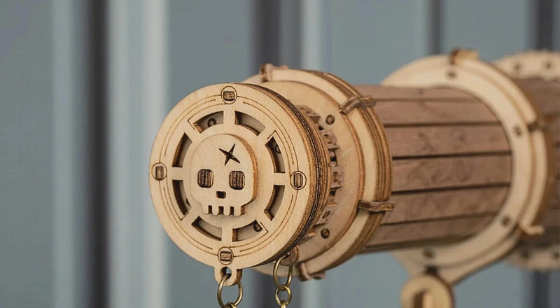 This exquisite model is a vintage pirate telescope replica with intricate imprints and an adjustable tripod. Adjusting the three tubes allows magnification of distant objects through the lens.