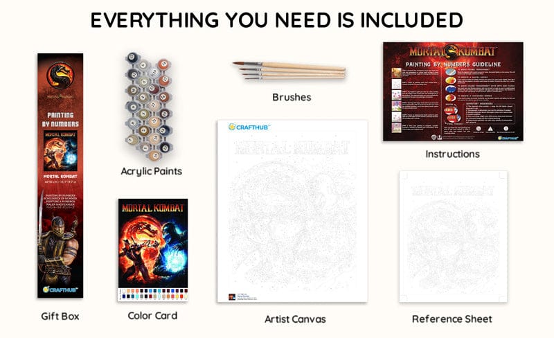 All our Canvas by Numbers painting kits include everything you need: a finely woven linen blend canvas, a pre-mixed acrylic-based paint set, four artist-quality wood paint brushes, a reference sheet of the canvas, and a helpful “Getting Started” quick guide.