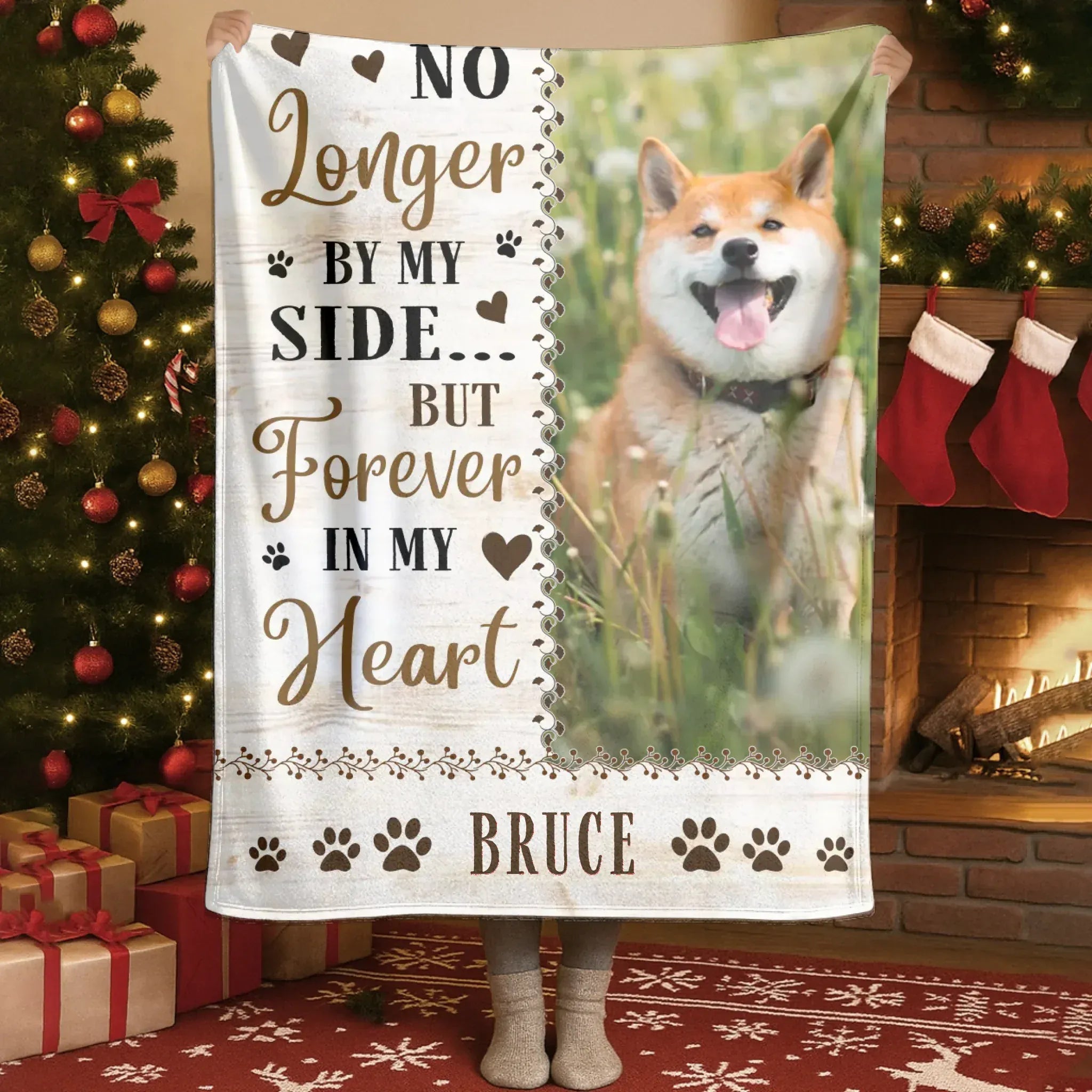 No Longer By My Side But Forever In My Heart - Personalized Dog Memorial Photo Blanket