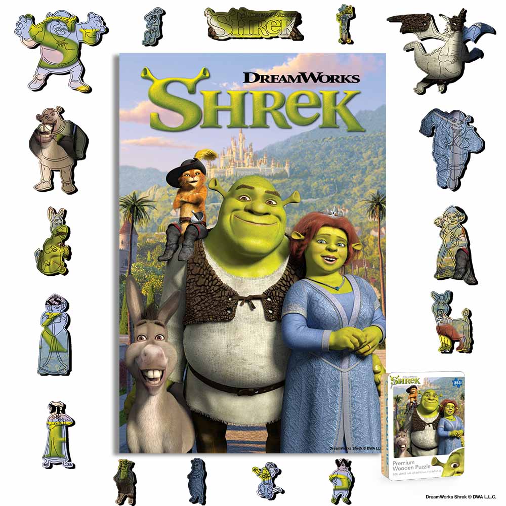 Piece together the hilarious and heartwarming world of Shrek with one-of-a-kind shapes inspired by iconic characters and moments — from Shrek’s ogre silhouette and Donkey’s playful grin to Fiona, Puss in Boots, and the dragon herself. Each shape adds a touch of storytelling fun to your puzzling adventure through Far Far Away.