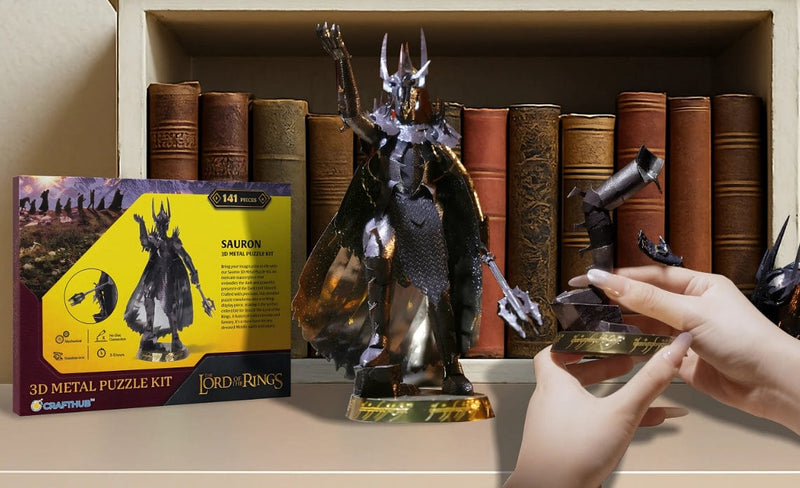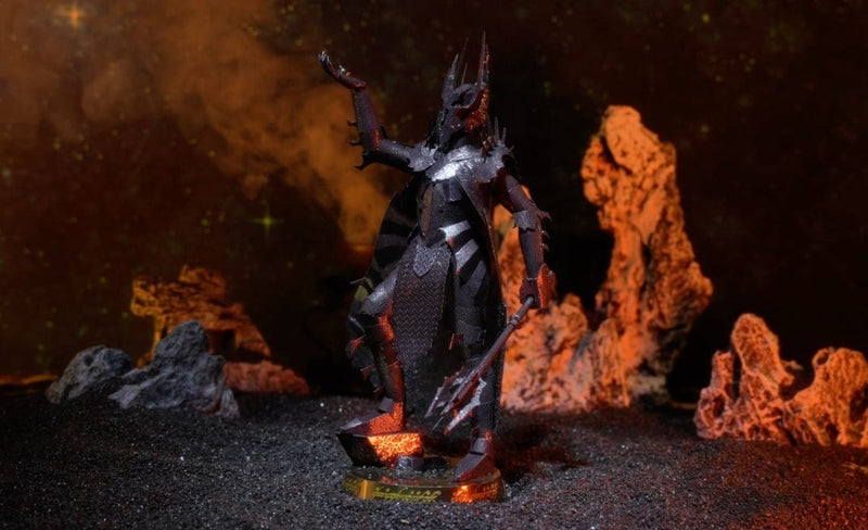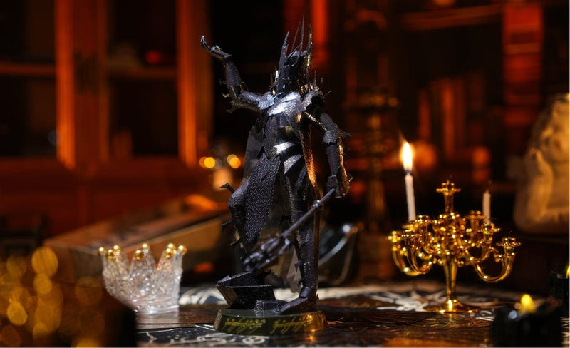 Bring Sauron to life in shimmering black metal—from his spiked armor to his crowned helm—crafted to embody the dark majesty of the Dark Lord.