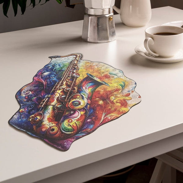 As you piece together our Saxophone Puzzle, you’ll encounter unique pieces that artfully showcase the grandeur of piano keys, the intricate internal mechanics of saxophones, musical notes, treble clefs, and snippets of sheet music.