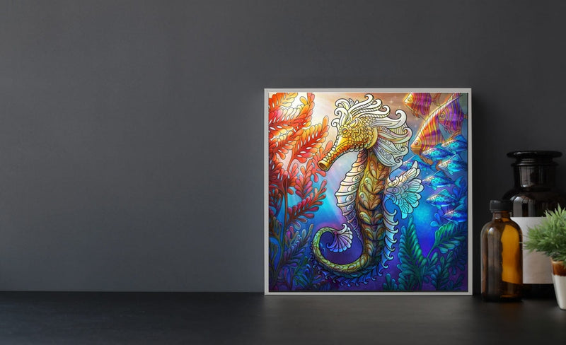 Advanced UV printing technology ensures bright and vivid Shining Seahorse design that becomes a stunning art displays when completed.