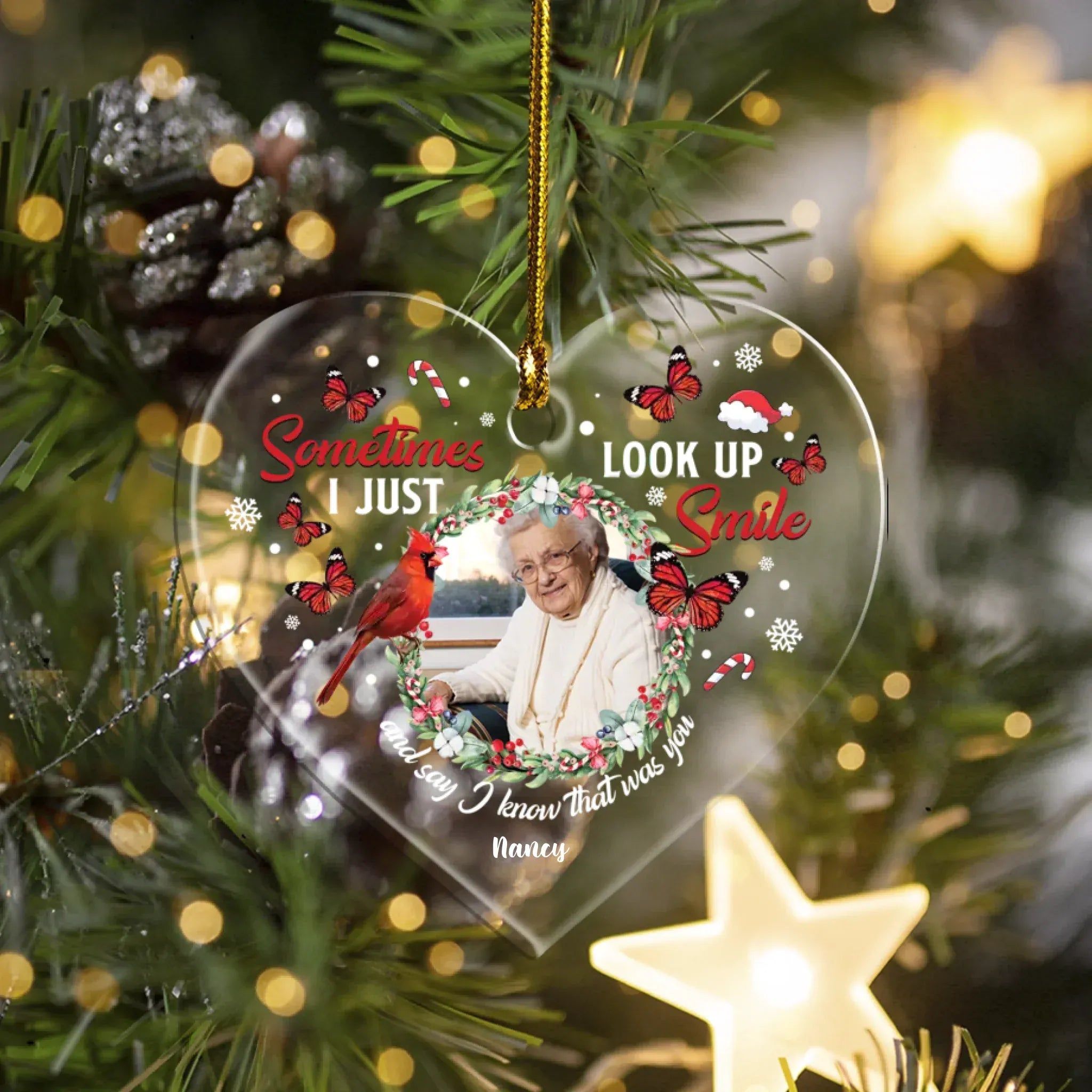 Sometimes I Just Look Up, Smile, And Say I Know That Was You - Personalized Memorial Photo Custom Acrylic Ornament