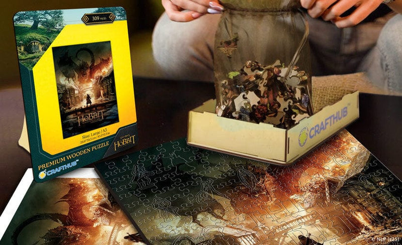 Embark on an epic journey through Middle-earth with puzzle pieces shaped like Bilbo, Gandalf, Gollum, Smaug the dragon, the One Ring and legendary symbols fromThe Hobbit.