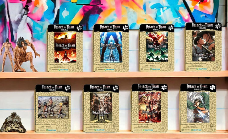 Delve into the heart of the story with our unique puzzle pieces shaped featuring Eren, Mikasa, and a host of formidable Titans including The Pure, The Abnormal, and The Colossal.
