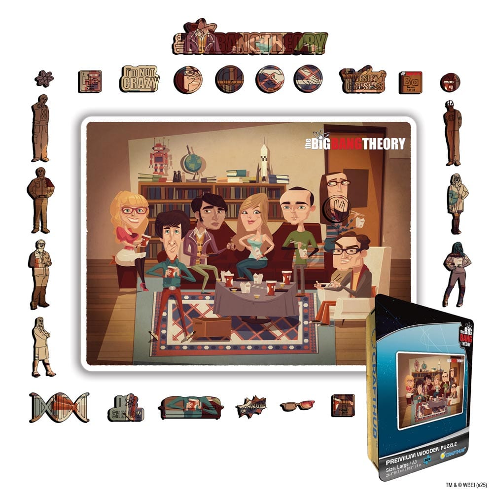Celebrate the show’s brilliance with uniquely shaped puzzle pieces like Sheldon, Penny, DNA strands, the iconic couch, scientific elements, Bazinga speech bubbles, and more.