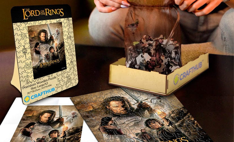 Assemble the darkness and legends of Middle-earth with unique pieces shaped like Aragorn, Gollum, Gandalf, Sauron, the One Ring, Elven leaves, Dwarven axes, and the White Tree of Gondor.