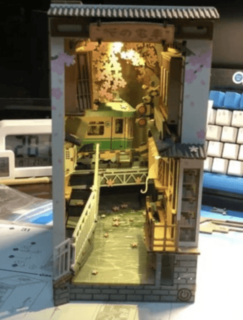 This self-build bookshelf decoration, the Time Travel Book Nook kit, is a train station teleporting you to different eras and spaces. Equipped with all the necessary parts and tools, you can assemble a captivating miniature station scene. Enjoy piecing it together to create a distinctive book nook insert and a unique piece of home decor.