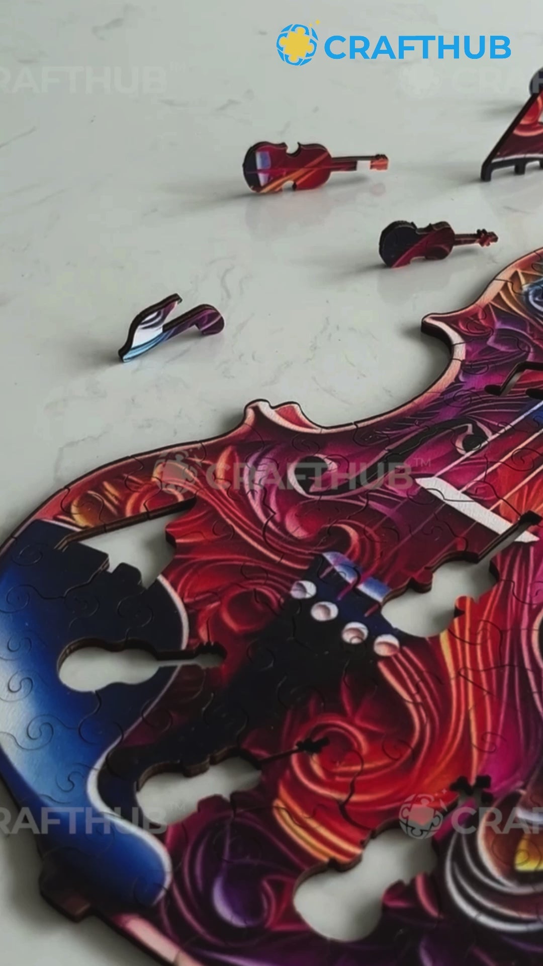 Set out on a melodious journey across strings and bows. A masterpiece artwork that resonates with music aficionados and puzzle enthusiasts alike. Accented by whimsical musical-themed pieces and specially shaped sections, this puzzle strikes the right chord in terms of beauty and intricacy.Key features: