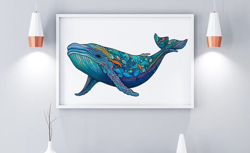 Advanced UV printing technology ensures bright and vivid Whale design that becomes a stunning art displays when completed.